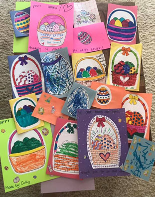 During the Egg Hunt event some of the kiddos colored and made a card for the Naples Green Village Memory Care down the street off of Cypress Way E. The cards and some cupcakes were dropped off before Easter as a special surprise to the residents. They were so grateful for these beautiful masterpieces! |